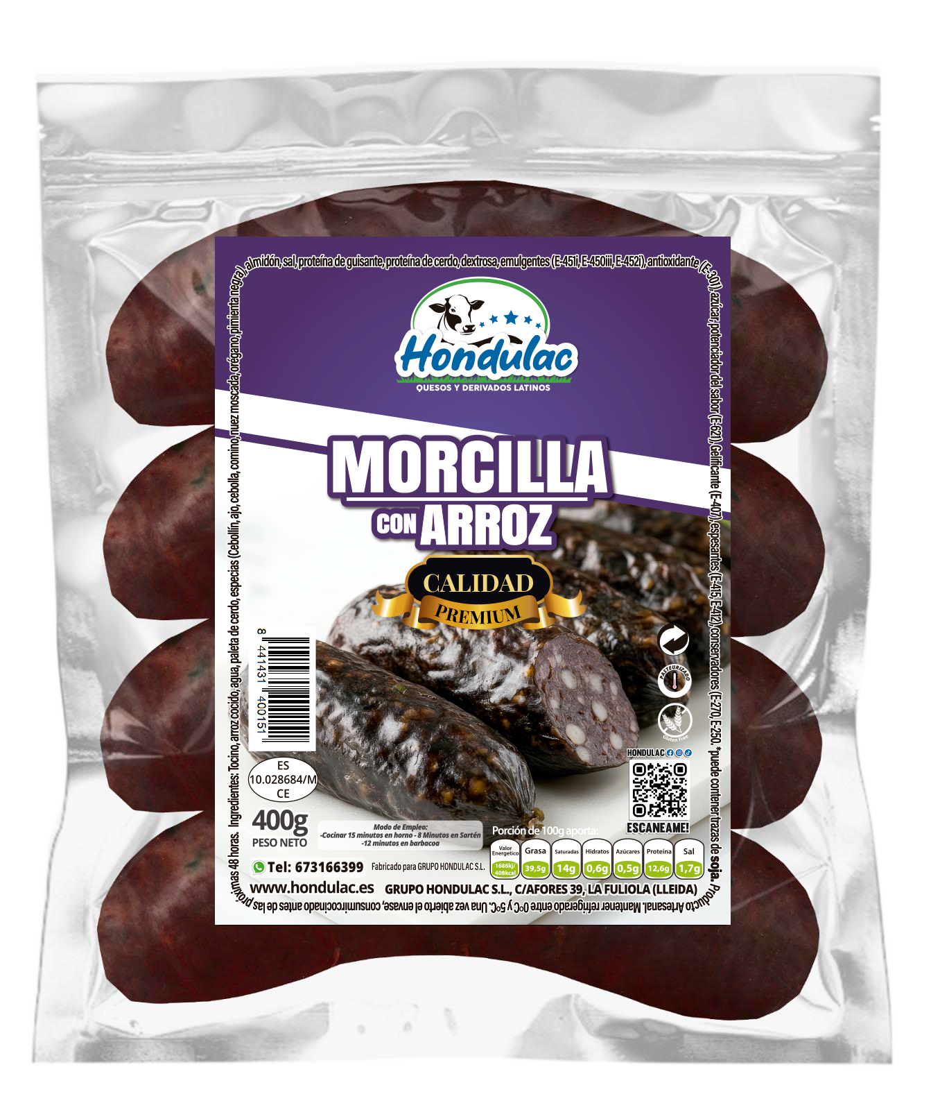 Embutido tradicional elaborado con morcilla y arroz. Ideal para freír o acompañar en platos típicos.