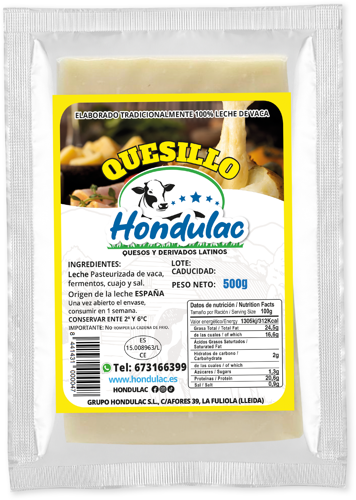 Queso fresco, ligero y elástico.